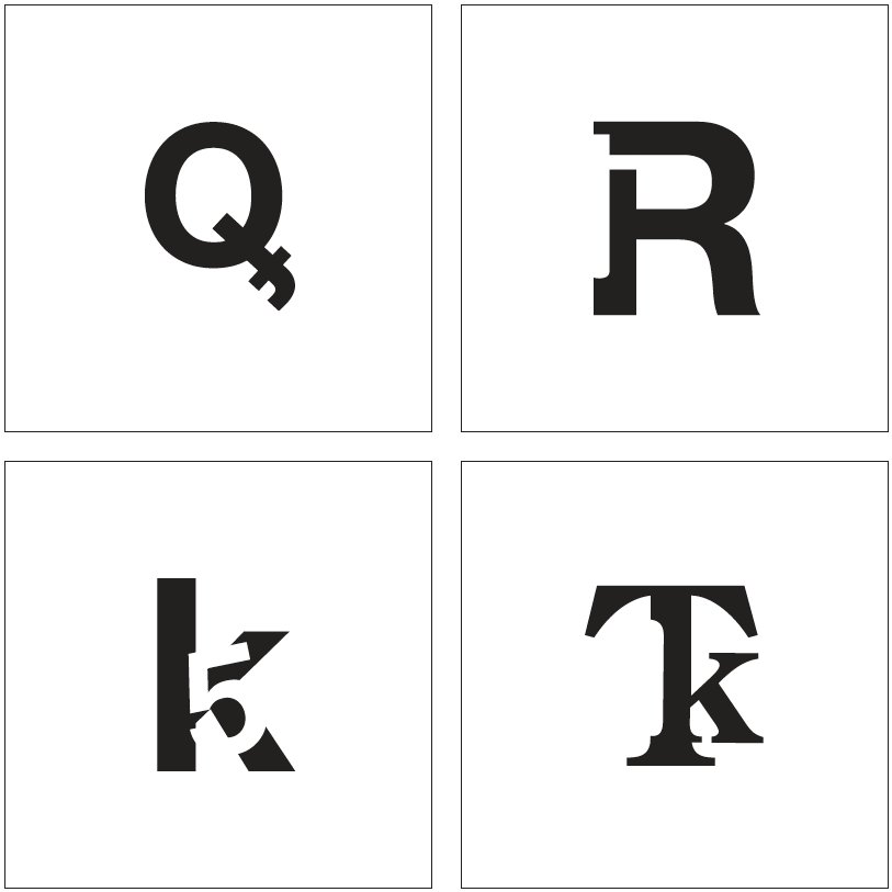 We chose a character from our typeface and explored the lines and form of them, often moving from heavy abstraction to the reveal.